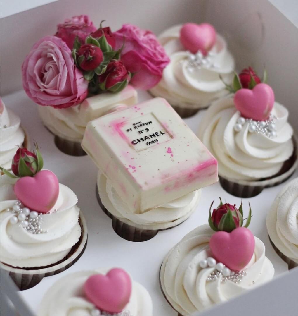 Нежные капкейки с украшением в виде флакончика знаменитых и любимых многими девушками духов...