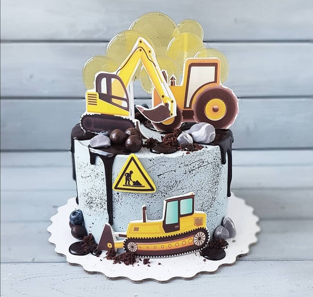 Строительно-дорожная тематика торта обязательно понравится виновнику торжества!