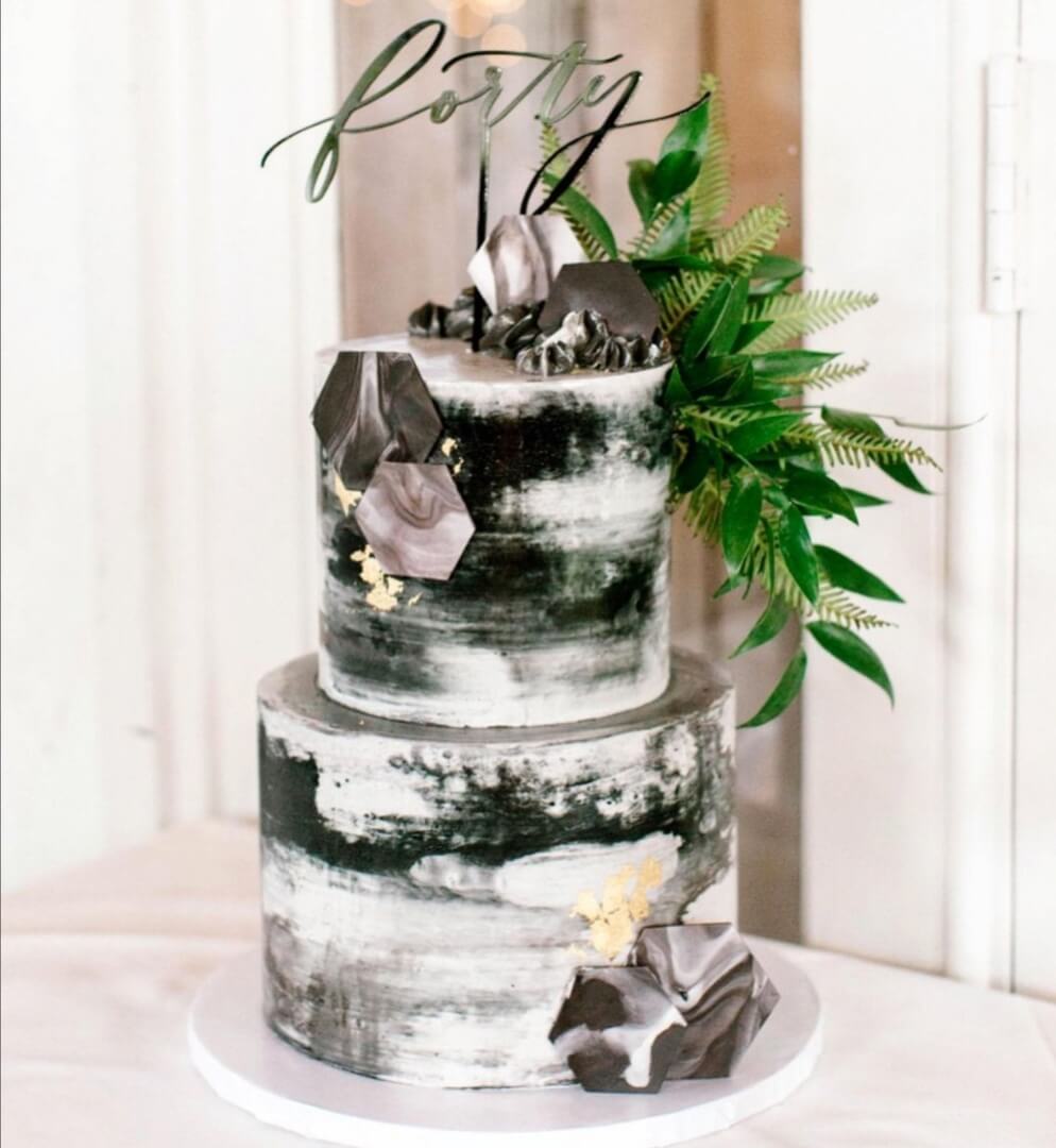 Большой тортик в виде каменного монолита олицетворяет всю надежность и непоколебимость виновника торжества